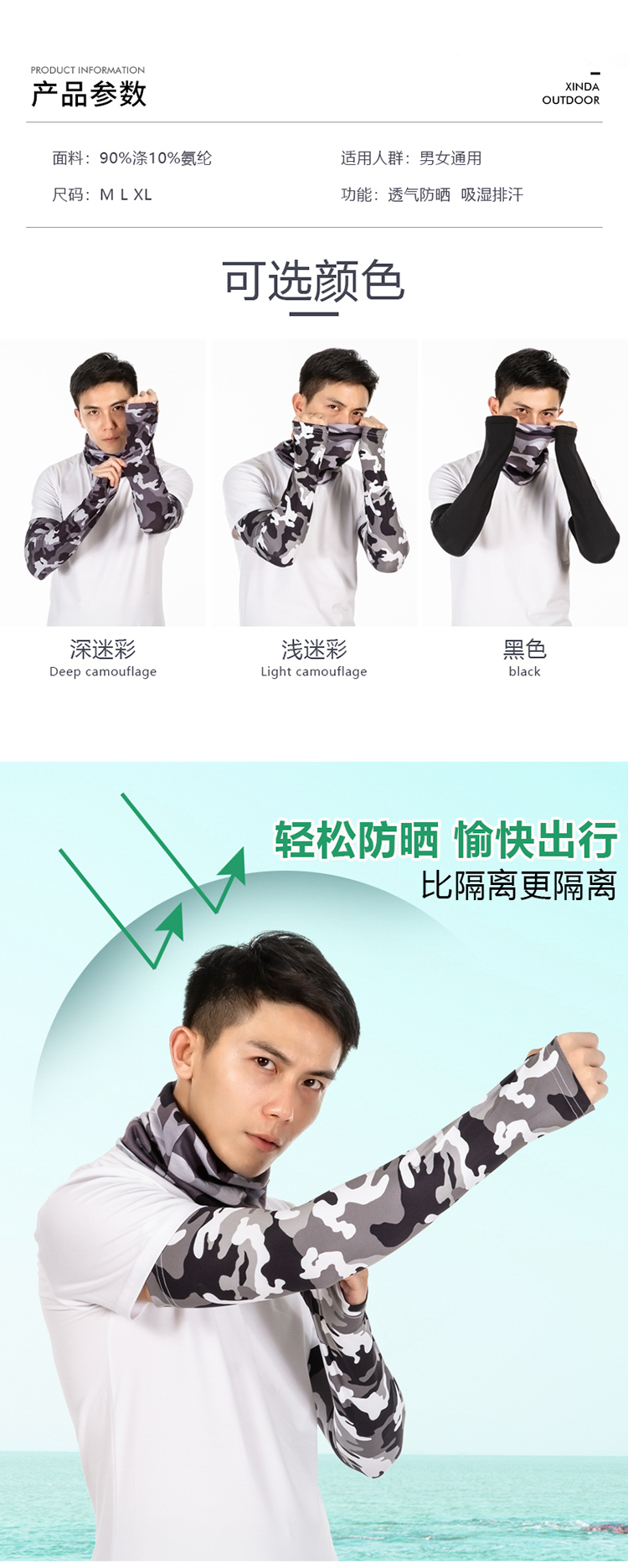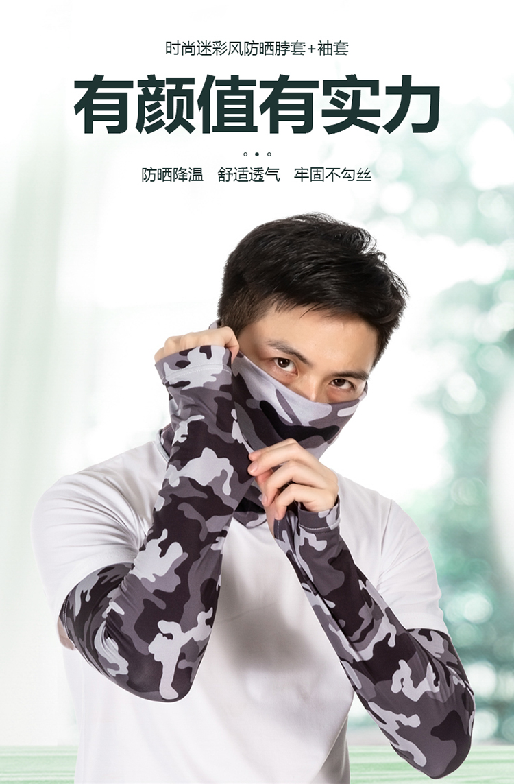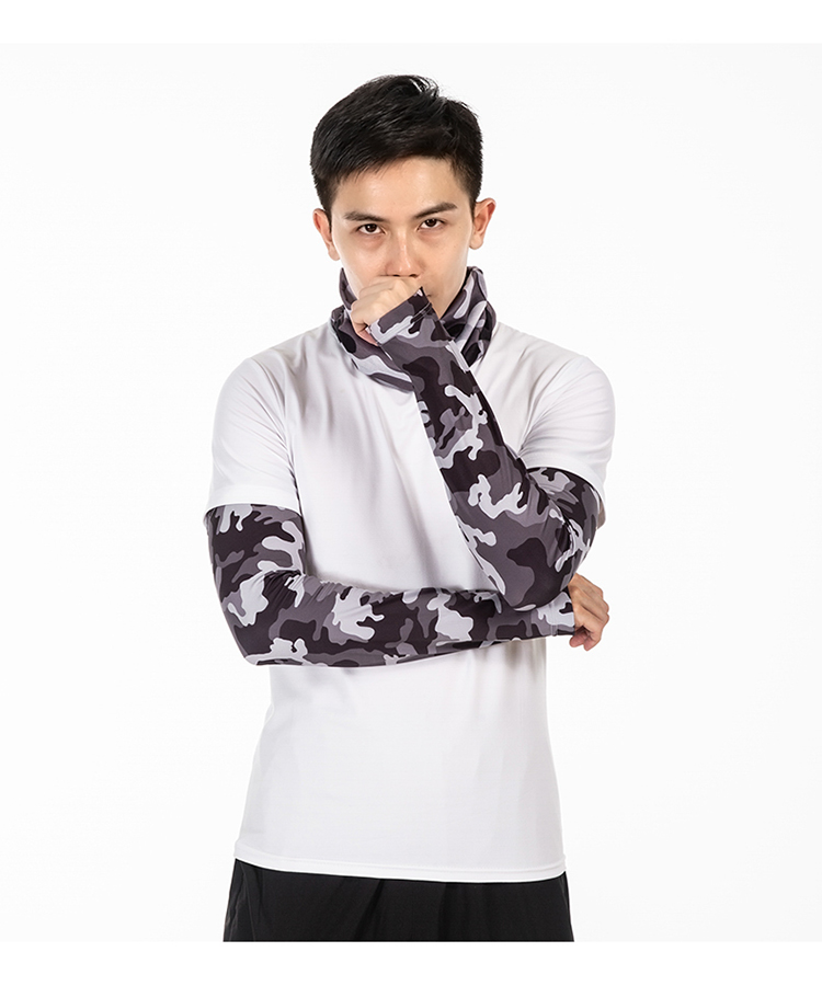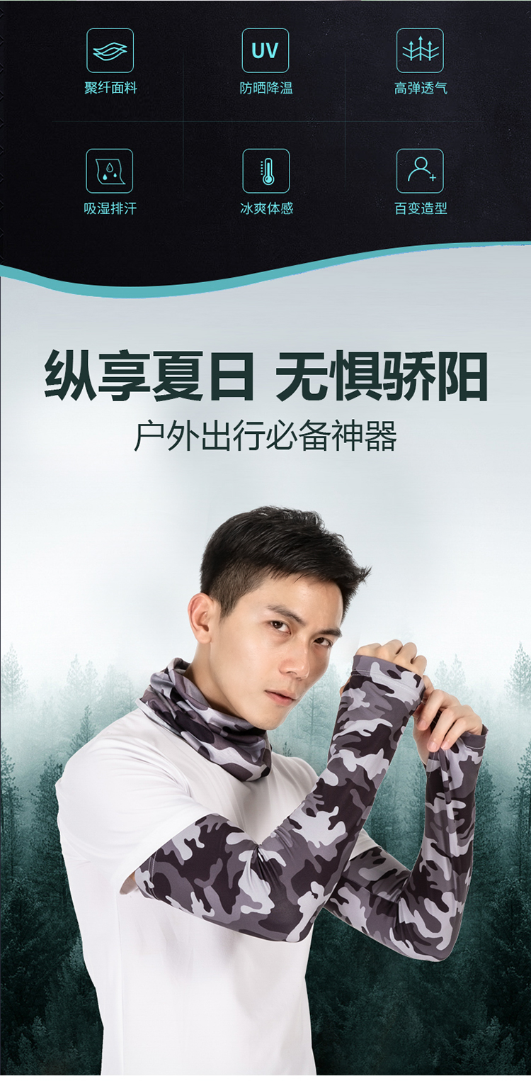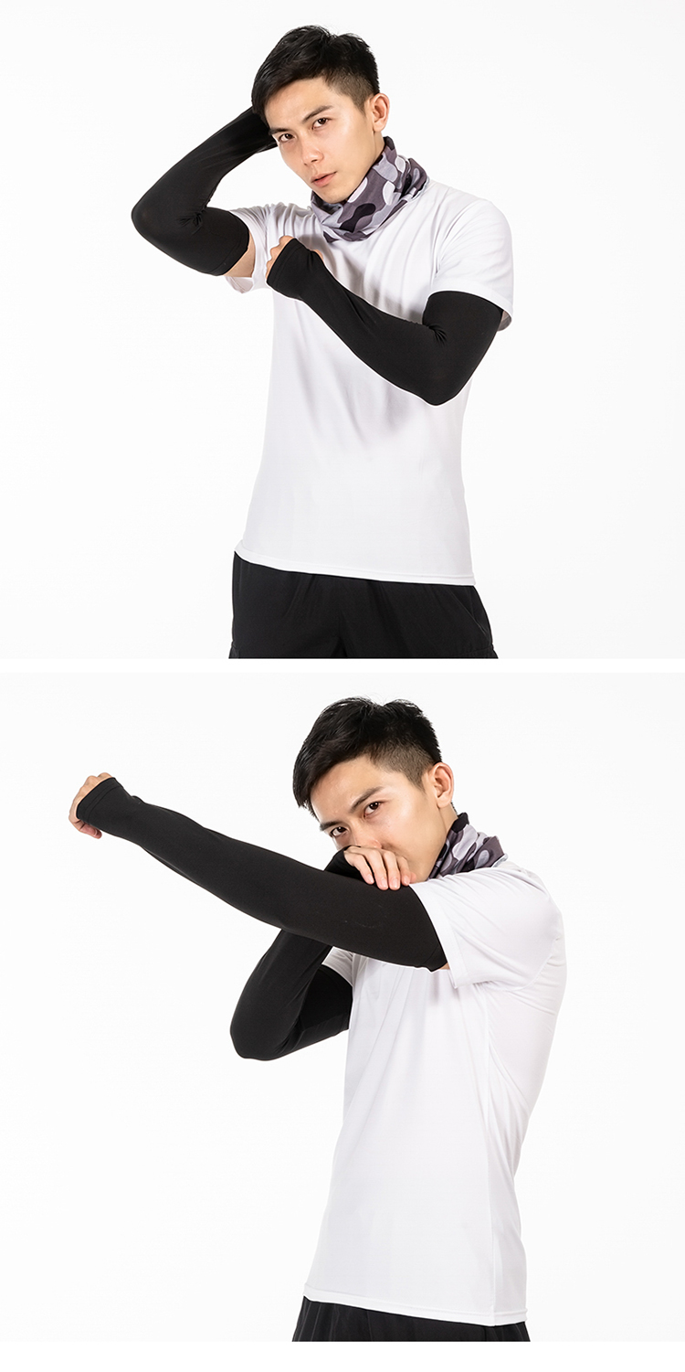 R-05金馬哈路亞冰絲袖套。冰絲面料專享舒适。90%滌10%氨滌氨冰絲效果面料,吸濕排汗。快幹效果.清涼一夏加抗紫外線50+加吸濕排汗