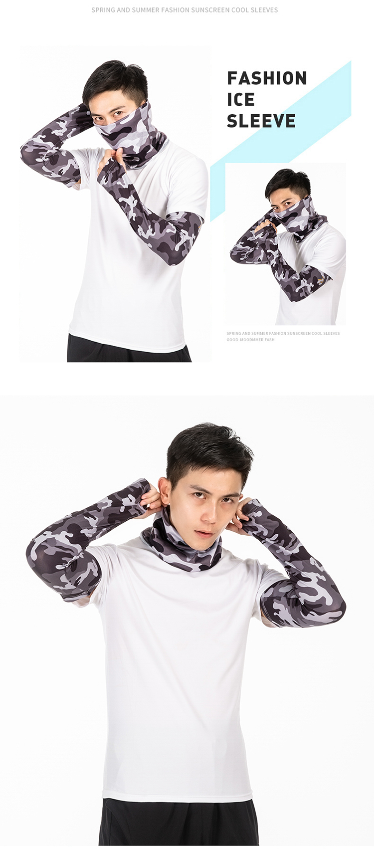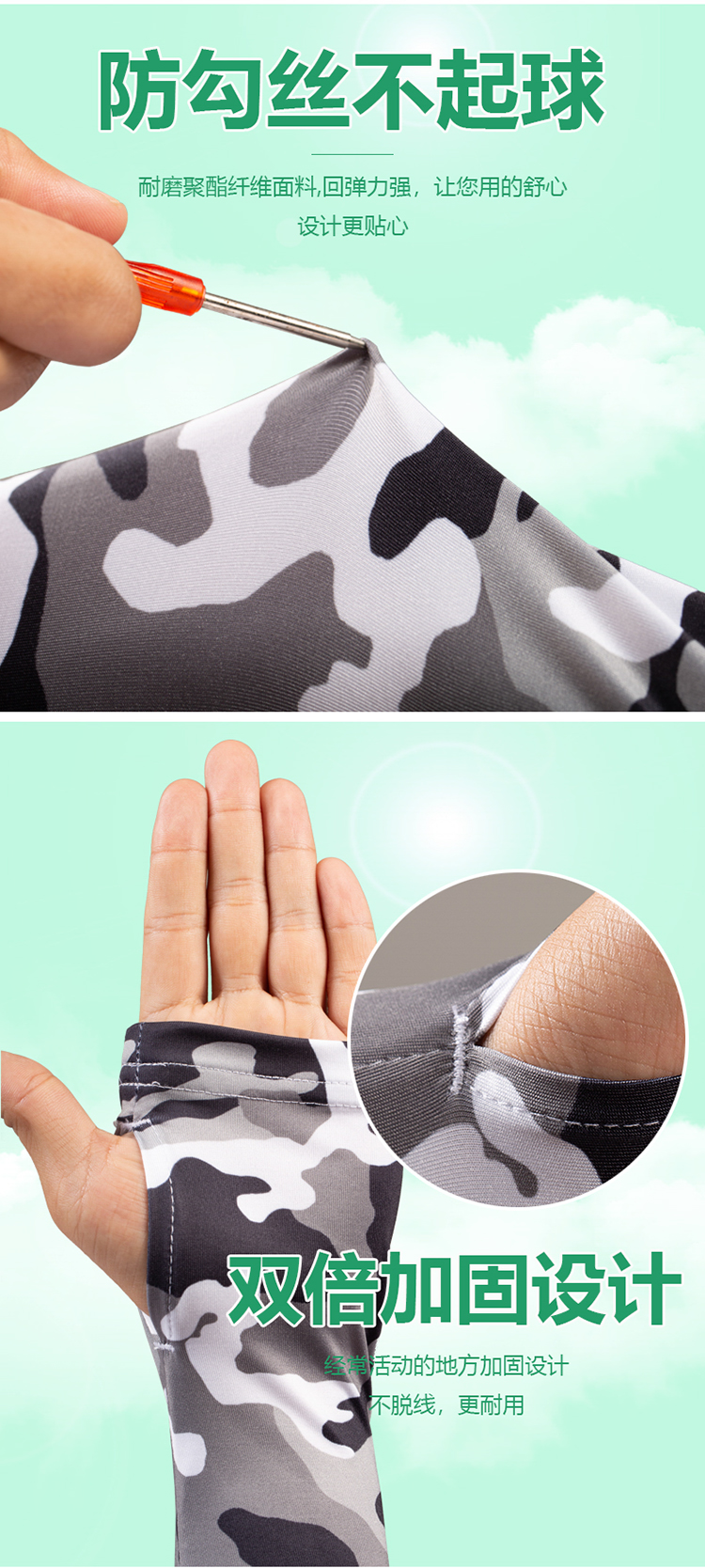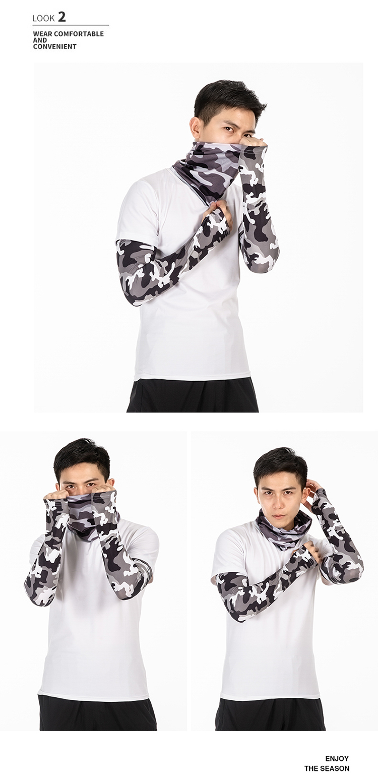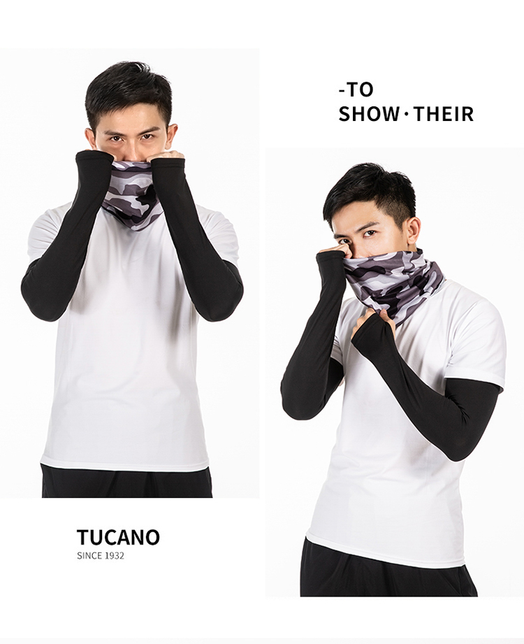 R-05金馬哈路亞冰絲袖套。冰絲面料專享舒适。90%滌10%氨滌氨冰絲效果面料,吸濕排汗。快幹效果.清涼一夏加抗紫外線50+加吸濕排汗
